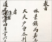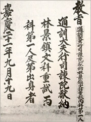 - 敎旨 通訓大夫行司諫院獻納林景鎭文科重試丙科第一人