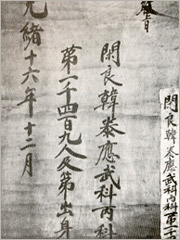 - 閑良韓泰應武科丙科第一千四百九人敎旨
