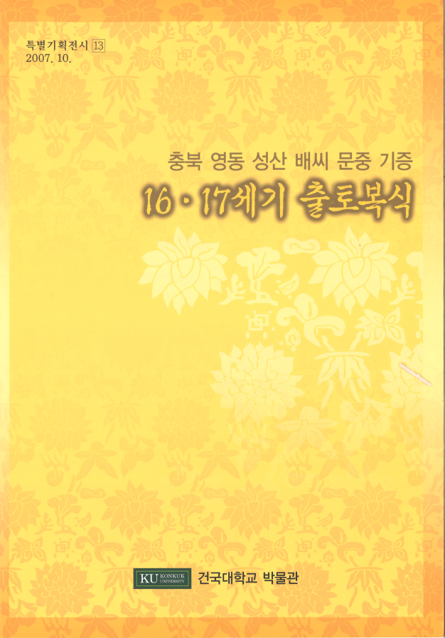 2007년 10월 건국대학교 박물관 특별전시회 성산배씨 문중기증 16, 17세기 출토복식