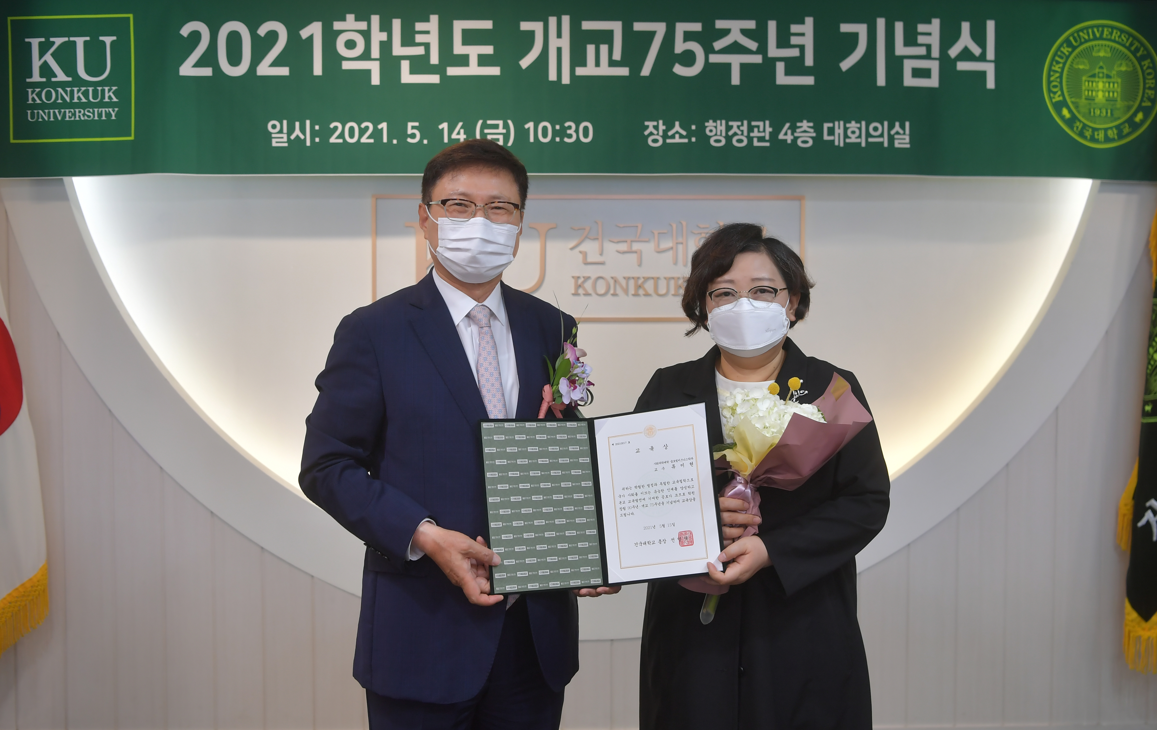 탁월한 열정과 투철한 교육철학으로 학업지도와 교육활동에 최선을 다하는 교수에게 수여하는 교육상에서는 사회과학대학 글로벌비즈니스학과 류미현 교수, 상허생명과학대학 축산식품생명공학과 배동호 교수가 선정됐다.