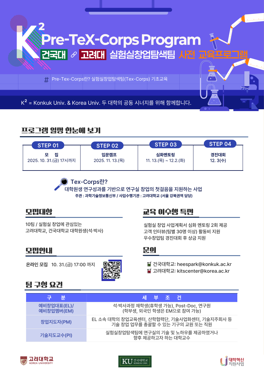 1. 교육명: 2025 K² Pre-TeX-Corps 프로그램(건국대 x 고려대 협력 프로그램)