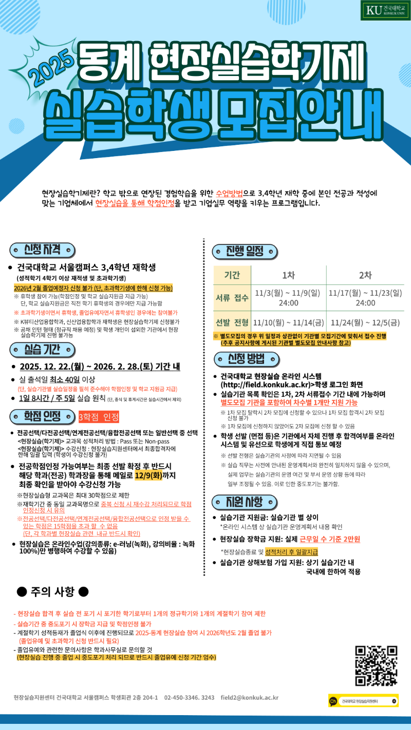 4. 신청방법: 현장실습 온라인 시스템 접속(http://field.konkuk.ac.kr)