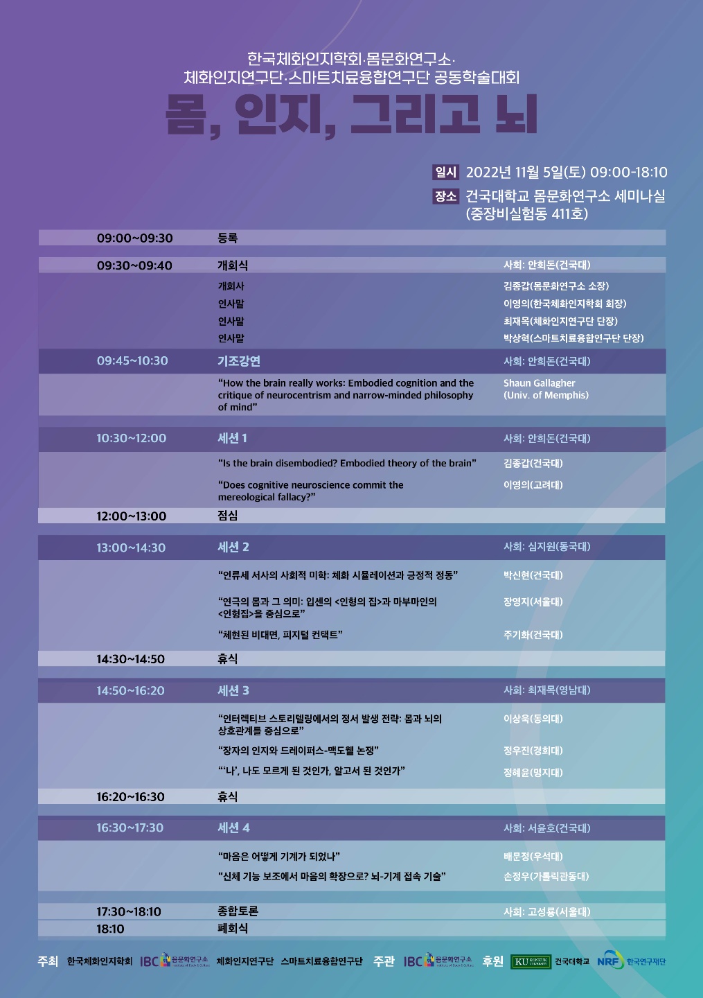 2022 Joint Conference with Society of Embodied Cognition, Institute of Body and Culture, Embodied Cognition Research Group, and Smart Cures Convergences System Technologies