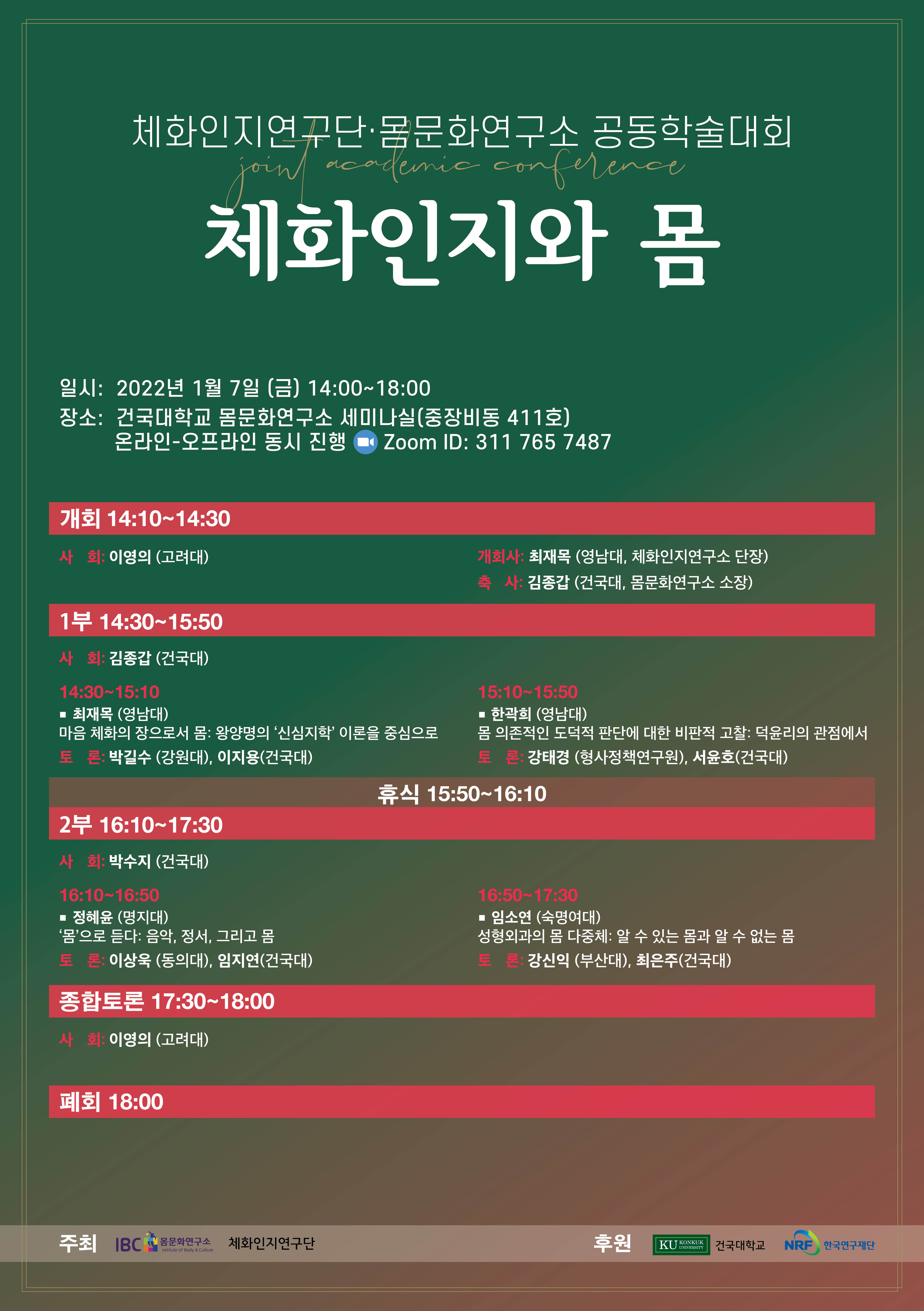 장소 : 건국대학교 몸문화연구소 세미나실(중장비실험동 411호)