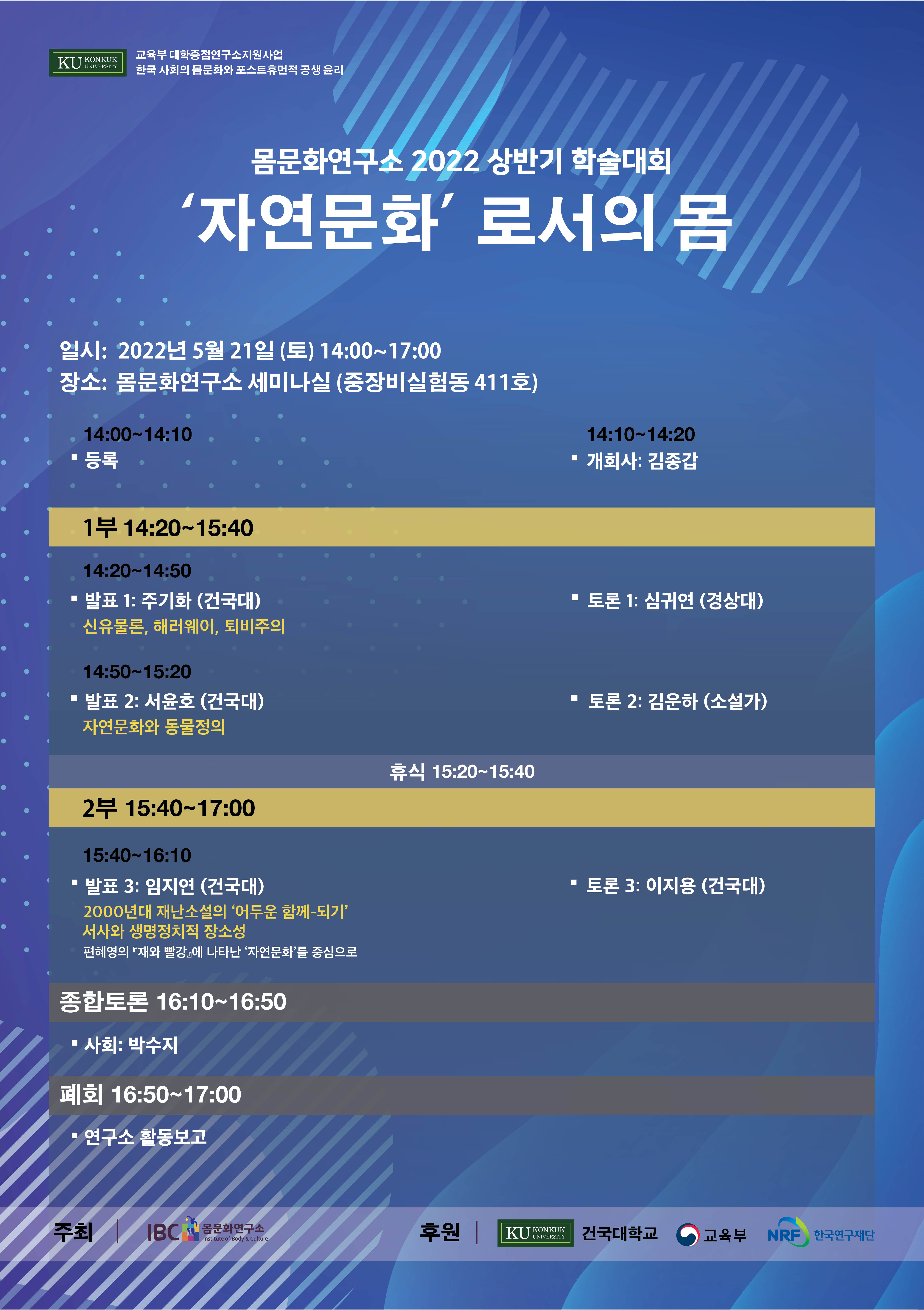 2022년 몸문화연구소 학술대회 <'자연문화'로서의 몸> 개최를 안내드립니다.