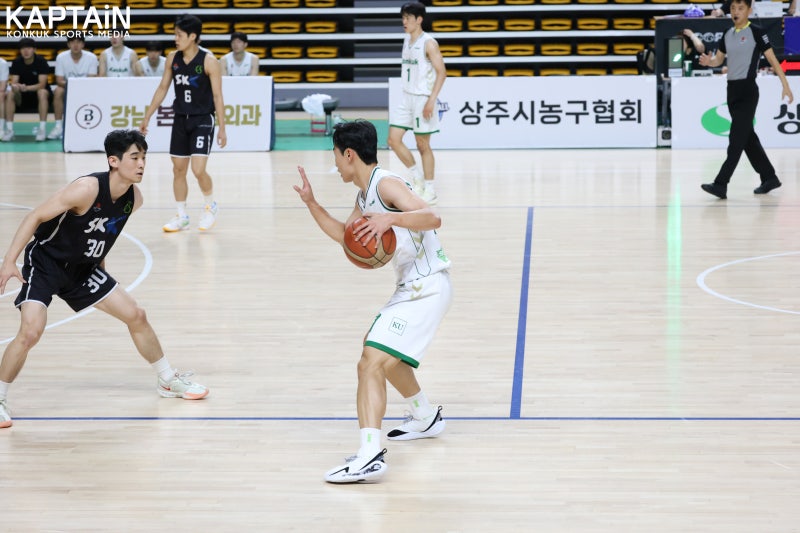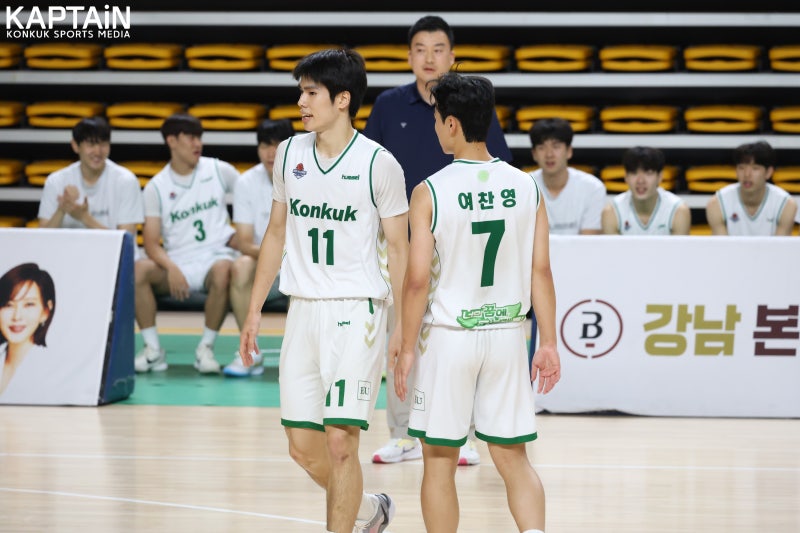 대회에서 산뜻한 출발을 알린 두 팀의 맞대결이었다. 건국대는 예선 1차전에서 조선대학교를 상대로 40점 차 승리를 거뒀다. 이날 엔트리 등록 선수들이 골고루 득점하며 팀 승리를 이끌었다. 그중 여찬영(181cm, G)과 김태균(185cm, G)이 눈에 띄었다. 각각 14득점, 5어시스트, 2스틸과 11득점 2어시스트로 활약했다.