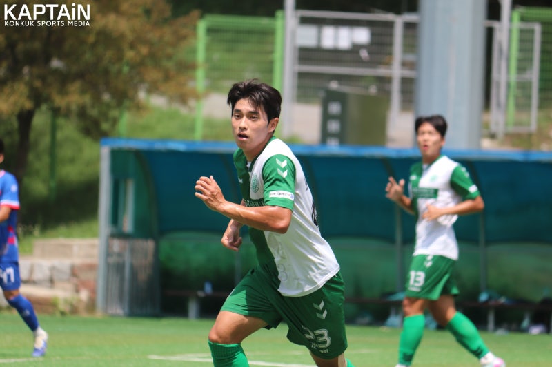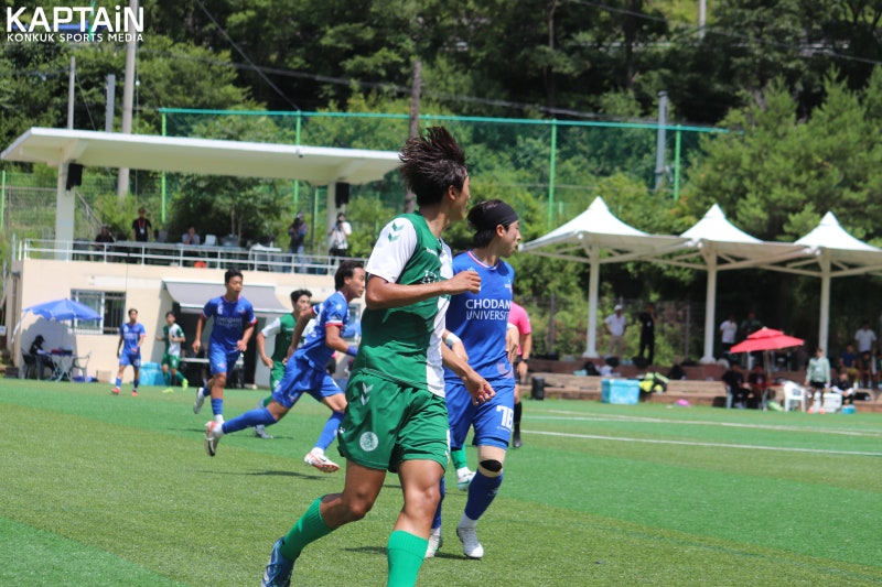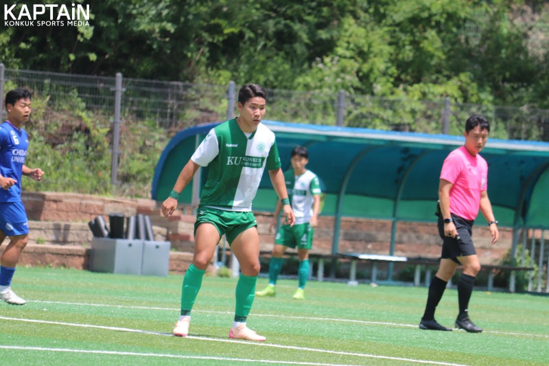 전반 막판 건국대가 강한 압박으로 동점골을 노렸으나 상대 수비가 견고했다. 이후 추가 득점 없이 1-2로 전반전을 마쳤다. 후반전에는 압박 강도를 높여 공격 기회를 득점으로 만들어야만 했다.