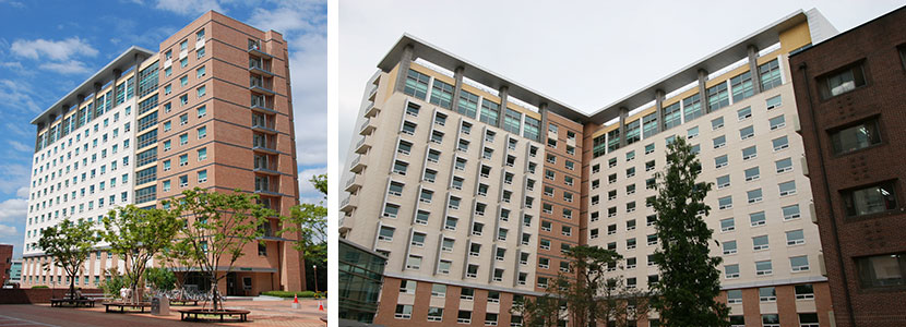 - 每个大厅一楼 : 公共洗衣房(提供洗衣机、烘干机、熨斗)、包裹存放区