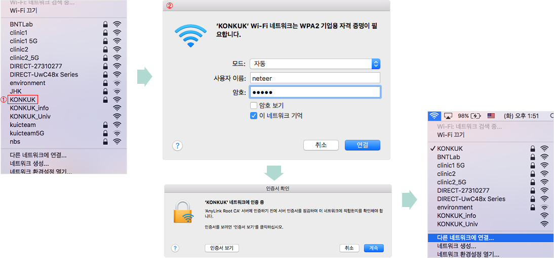 - KONKUK‑GUEST:为方便访问建国大学首尔校区的每个人提供无线互联网服务。