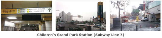 While using Subway Line 7 (Dark Green), you can also get off at Children’s Grand Park Station (Uhrini Dae Gong Won Yuck). Go out Exit 3, walk straight until you see a Konkuk University sign. From there, you cannot miss the Konkuk Gate.