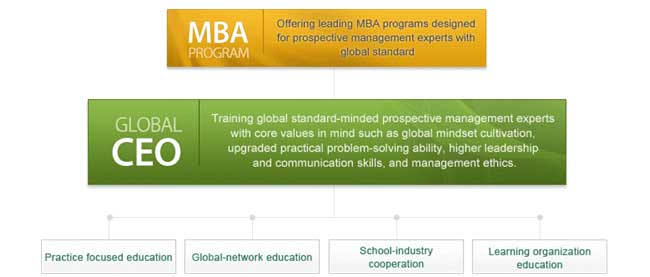 To attain those education objectives, KU MBA seeks for differentiation strategy including globally-networked, practice focused, school-industry cooperated and leaning organization focused educations.