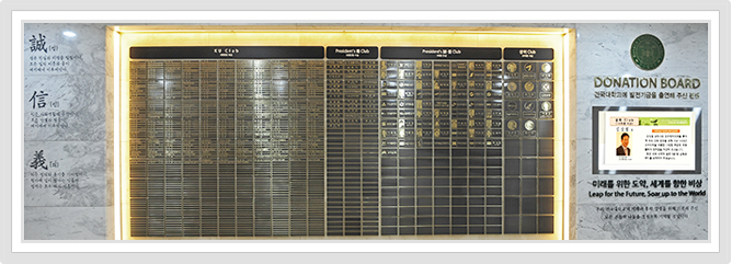- 2015년 2월. 건국대학교 행정관 1층에 발전기금 기부자 여러분의 정성을 기리고자 Donation Board가 설치되었습니다.