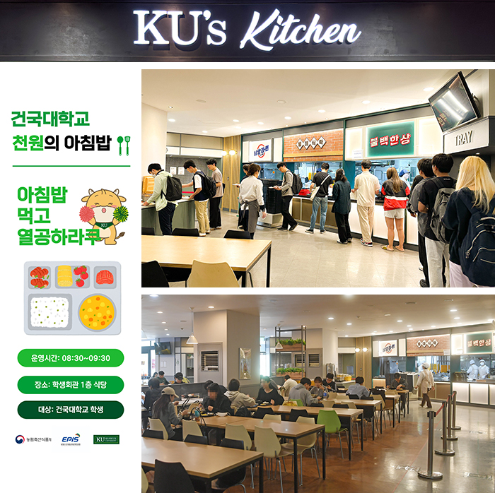 아침 결식률이 높은 대학생들에게 저렴한 가격에 양질의 식사를 제공하기 위하여 농림축산식품부, 서울시와 함께 진행하는 천원의 아침밥 사업을 실시하고 있습니다.