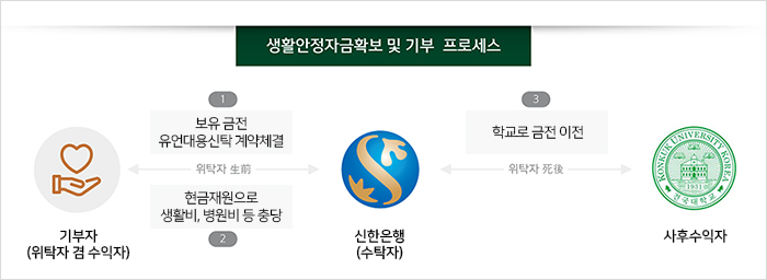 - 기부자 생전, 잔여재산을 학교에 기부할 목적으로 보유 금전을 신탁하는 계약체결