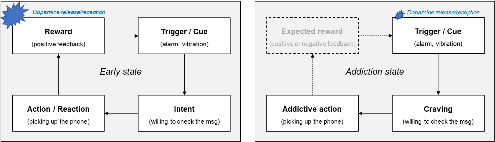 출시 제품, 서비스 대상으로 측정된 사용자 가치(User value)를 중심으로 사용자의 브랜드, 기업 충성도 체계를 개발하고 측정합니다. 사용자 가치는 사용자 경험의 대체 개념이며 브랜드 및 기업 가치와 연결되어 있고, VSM, DRM 등의 방법을 통하여 수집할 수 있습니다. 이 과정에서 옅은 중독이 충성도에 미치는 영향을 분석하고 모델을 개발하는 연구를 수행합니다.