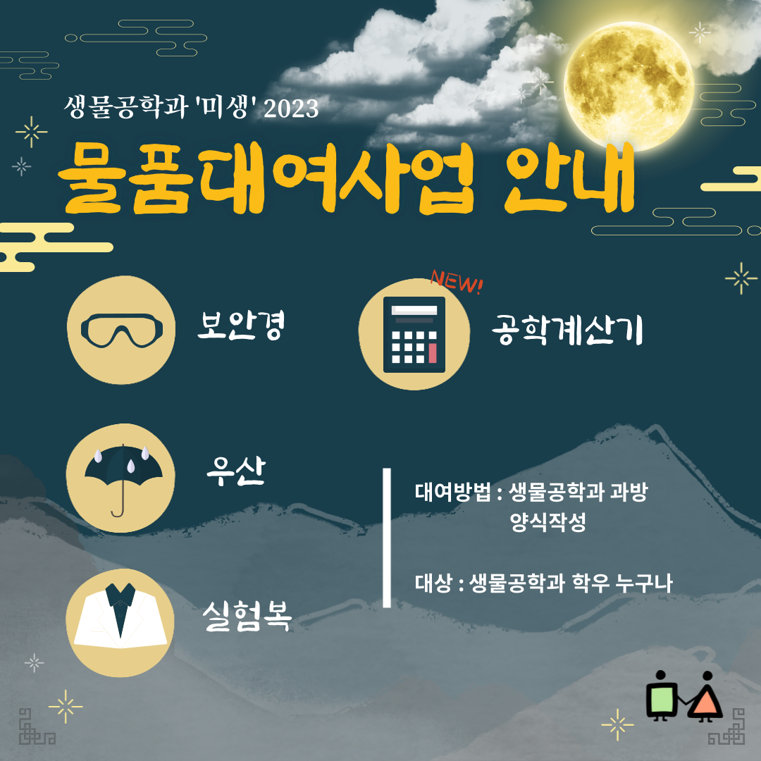 학과 내 복지 운영 담당 : 생물공학과 학우들의 대학 생활에서 불편함 을 겪지 않도록 대여 사업 및 복지 업무를 추진한다. 학우들의 목소리에 귀를 기울여, 학과 내 부족한 점을 보완하는 것을 목적으로 한다.