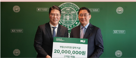병의원 전문 세무회계 법인 ‘원택스’의 최준호 대표(법학01)가 지난해 11월 26일 부동산대학원 장학기금 2천만 원을 기부하고 1억 원을 약정했다. 건국대 부동산대학원 39기 원우 출신인 최 동문은 업계에서 활발히 활동하는 동시에 학교 발전을 꾸준히 응원해 왔다. 최준호 대표는 “부동산대학원에서 수학하며 건국대 출신이라는 데 큰 자부심을 느꼈다”며, “이번 기금이 후배들이 학업에 전념하고 각자의 꿈을 펼치는 데 작은 디딤돌이 되기를 바란다”고 소감을 밝혔다. 이에 원종필 총장은 “후배와 학교를 위해 큰 뜻을 실천해주신 최준호 동문께 깊이 감사드린다"며, "기탁해주신 장학기금은 부동산대학원 학생들이 미래 부동산 분야를 선도하는 인재로 성장하는 데 든든한 밑거름이 될 것”이라고 화답했다.