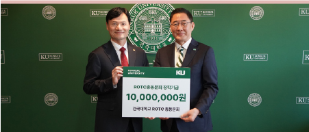 건국대학교 ROTC 총동문회가 지난해 11월 28일 건국대에 장학기금 1천만 원을 기부했다. 기부식은 이날 건국대 행정관 총장실에서 열렸으며, 김현희 ROTC 총동문회장을 비롯한 동문회 관계자와 학교 주요 관계자들이 참석해 뜻을 함께했다. 김현희 회장은 “ROTC 시절에 배운 사명감과 리더십이 인생의 소중한 자산이 됐다”며, “후배들이 경제적 부담 없이 학업과 훈련에 집중해 훌륭한 장교로 성장하길 바란다”고 말했다. 이에 원종필 총장은 “모교와 후배들을 위해 꾸준히 나눔을 실천해 온 ROTC 총동문회에 깊이 감사드린다”며, “기탁된 장학기금은 미래 군 리더 양성을 위해 소중히 활용하겠다”고 밝혔다. 한편, 건국대 ROTC 총동문회는 장학금 기탁과 멘토링 등으로 후배들을 꾸준히 지원하고 있으며, 건국대 ROTC(제113학군단)는 체계적인 교육과 실전형 훈련을 통해 우수한 장교를 꾸준히 배출하고 있다. 특히 2025년 하계 입영훈련에서는 전국 108개 학군단 중 3위를 기록하며 학교의 명예를 높였다.
