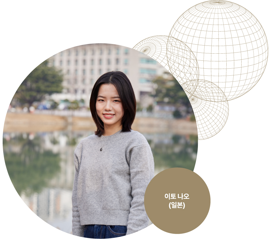 이토 나오 저도 입학 전, 서울의 여러 대학을 방문했는데 건국대 캠퍼스가 가장 여유롭고 마음에 들었어요. 실제로 수업을 들어보니 소수 인원이라 교수님과 소통할 기회가 많았고, 강의도 흥미로워서 첫 학기부터 좋은