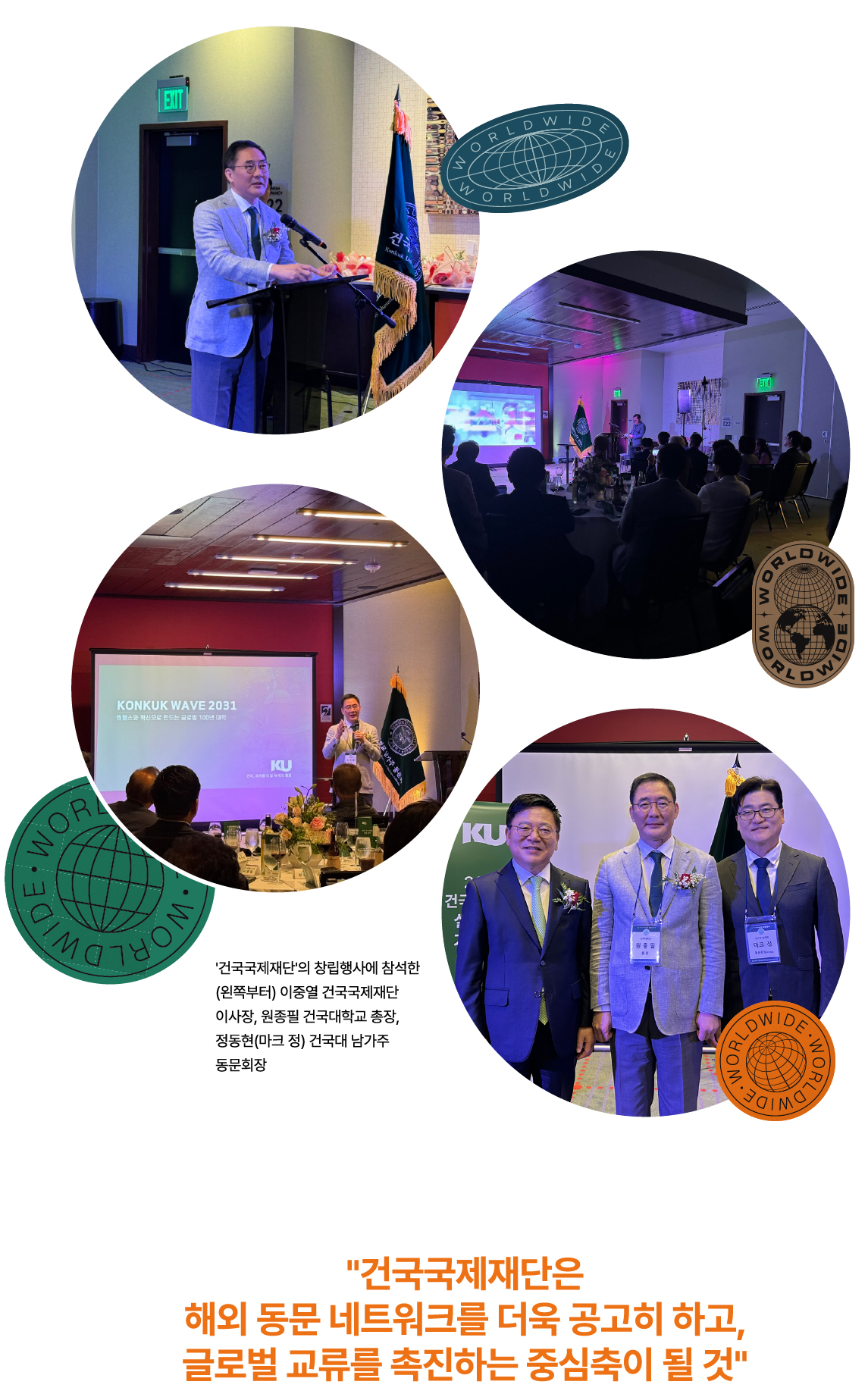 건국대학교가 글로벌 미래 경쟁력을 강화하기 위한 새로운 도약을 시작했다. 해외 동문과의 연결성을 높이고 세계 속 건국대의 위상을 확장하기 위한 글로벌 플랫폼, '건국국제재단'을 설립했다. 지난해 10월 22일, 미국 캘리포니아 부에나 파크 애너하임 힐튼 호텔에서 열린 재단 설립 기념행사는 건국대 국제화의 새로운 출발점을 알리는 자리였다. 건국국제재단은 미주 지역 건국대 동문들의 뜻을 모아 설립된 단체로, 해외 네트워크를 활성화하고 건국대의 글로벌 기부·협력 체계를 구축하기 위해 출범했다. 재단 설립 기념식에서는 미주 지역 동문들이 약 15만 달러의 발전기금을 기부·약정하며 든든한 첫 발걸음을 함께하기도 했다. 이번 기부는 건국국제재단의 출범에 의미를 더했으며, 향후 건국대 발전을 위한 다양한 사업과 국제교류 활성화에 활용될 예정이다. 건국국제재단 설립축하 기념행사에 참석한 원종필 총장은 축사를 통해 “건국국제재단은 해외 동문 네트워크를 더욱 공고히 하고, 글로벌 교류를 촉진하는 중심축이 될 것”이라며 “동문과 후원자의 지속적인 참여가 더해질 때 건국대의 도전은 새로운 역사가 되고, 학교의 이름은 세계 무대에서 더욱 빛날 것”이라고 강조했다. 앞으로 건국국제재단은 장학기금 조성, 글로벌 실습 연계 등 다양한 모교 발전 사업을 단계적으로 추진하며 미주 지역을 중심으로 한 글로벌 협력 생태계의 허브 역할을 하게 된다. 이는 해외 동문과 모교를 촘촘하게 연결하는 가교이자, 해외에서 건국대의 영향력을 확장하는 중요한 동력이 될 전망이다. 이번 재단 설립은 건국대학교가 지향하는 ‘글로벌 인재 양성’과 ‘세계 속 대학’이라는 비전을 더욱 공고히 하는 계기가 되었다. 해외 동문들의 든든한 후원과 참여를 기반으로, 건국대는 창학 100주년을 향한 여정 속에서 국제 경쟁력을 갖춘 명문 대학으로 한 단계 더 도약할 준비를 마쳤다.