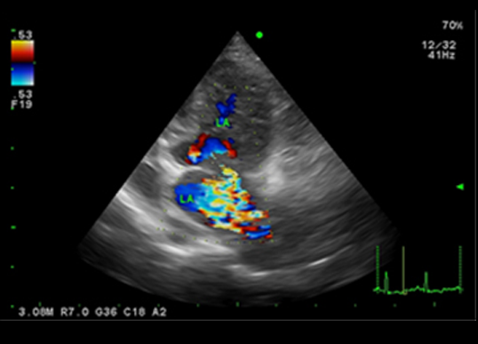 심장초음파를 통해 심장과 대혈관의 질환을 진단할 수 있는 검사법입니다. 심장초음파 검사는 심장 검사용 탐촉자를 이용하여 기본 영상과 도플러 검사를 통해 심장과 혈류의 움직임을 실시간으로 평가하고, 심근의 기능을 평가할 수 있는 검사입니다. 이를 통해 이첨판 폐쇄부전, 삼첨판 폐쇄부전, 동맥관 개존증(PDA), 폐고혈압과, 폐동맥 협착증, 대동맥 협착증과 같은 심장과 대혈관 질병을 진단하고 치료 경과의 확인을 위해 주기적인 재검사를 실시하고 있습니다.