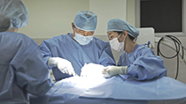 KU 동물암센터 외과팀에서는 풍부한 임상 경험을 가진 외과 교수진들이 암환자 맞춤형 수술을 계획하며 종양 특성에 따른 최신 장비 및 수술 방법 도입을 통해 수술 완성도를 향상시키고 정밀한 암수술을 제공합니다. 또한 복강경 수술, 레이져 수술, 초음파 수술과 같은 최소 침습적 수술을 통해 환자의 회복 기간을 단축할 수 있습니다. 그 외에도 광역동 치료와 다양한 장기의 스텐트수술로 생명 연장 및 삶의 질을 향상시킵니다. 전문인력 및 인프라 및 축적된 데이터를 바탕으로 종양환자에서의 안전하고 성공적인 수술을 위해 노력하고 있습니다.