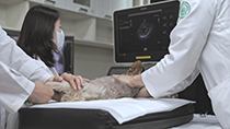 - KU 동물암센터 영상진단 의학팀에서는 육안적으로 확인하기 어려운 병변을 3차원적인 영상으로 나타내는 최신 영상진단기술을 보유하고 있습니다. 초음파 조영술 및 횡파탄성 초음파, MDCT와 MRI 등 최첨단 영상 기술 및 장비와 우수한 인력 운용을 통해 종양 환자에게 최상의 진단 및 치료를 제공합니다. 또한 영상 장비 유도하의 조직검사, 중재적시술을 통해 암 환자의 최소 침습적 진단과 치료방향 설정에 큰 역할을 하고 있습니다. 이와 더불어, 여러 진료과와의 협진을 통한 진료 자문의 역할 및 암 환자의 방사선치료 계획 수립을 수행하고 있습니다.